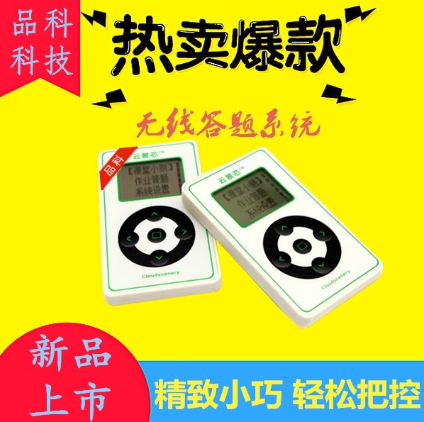 品科答題系統是基于2.4G無線射頻技術特點設計而成的,是一個輔助教師進行課堂互動的工具,是一套集教學互動反饋、教學評測及游戲活動于一體的課堂互動反饋系統。學生人手一個與校卡融合的答案發送器,根據作答模式使用校卡按鈕參與回答老師的提問;老師通過界面功能按鈕與學生進行課堂互動,互動參與情況會生成報告在“云”端展現。